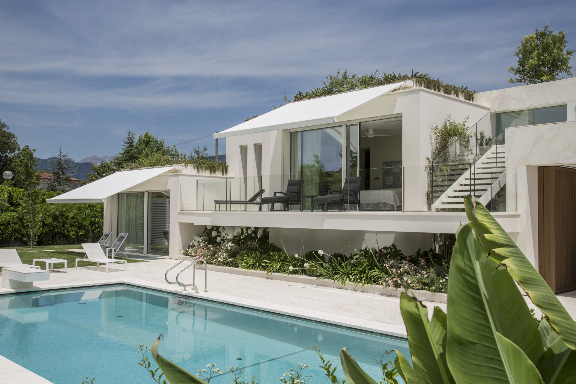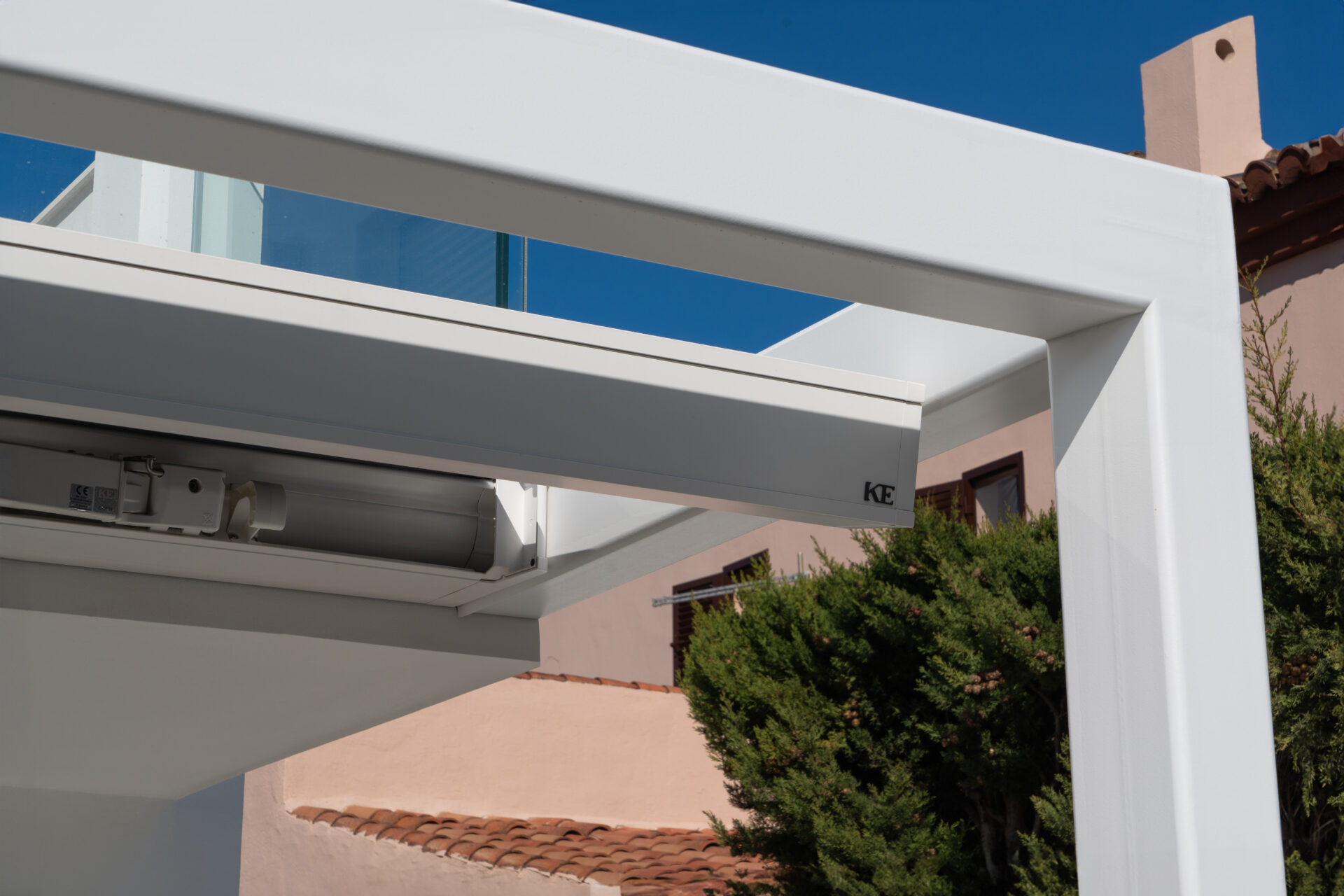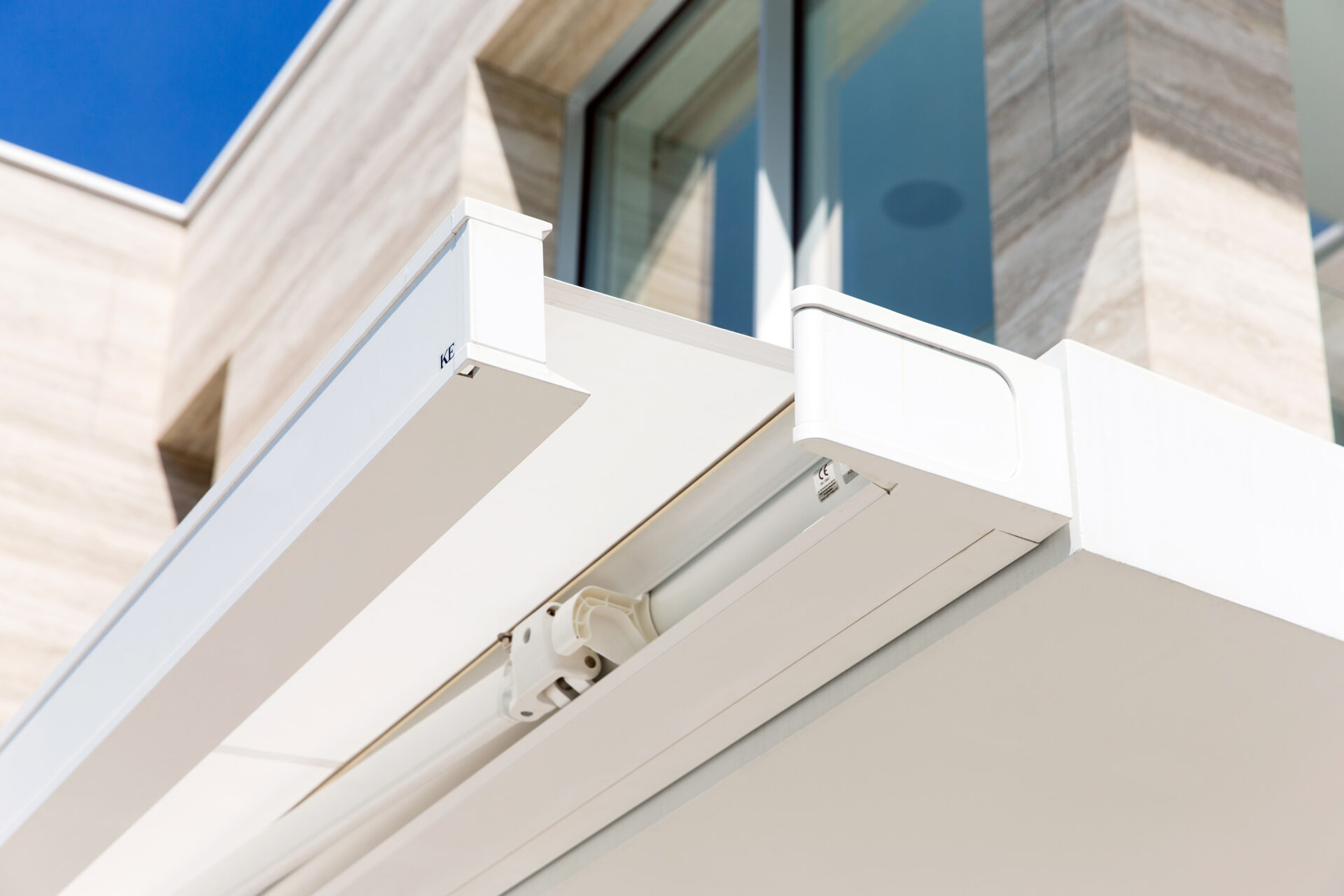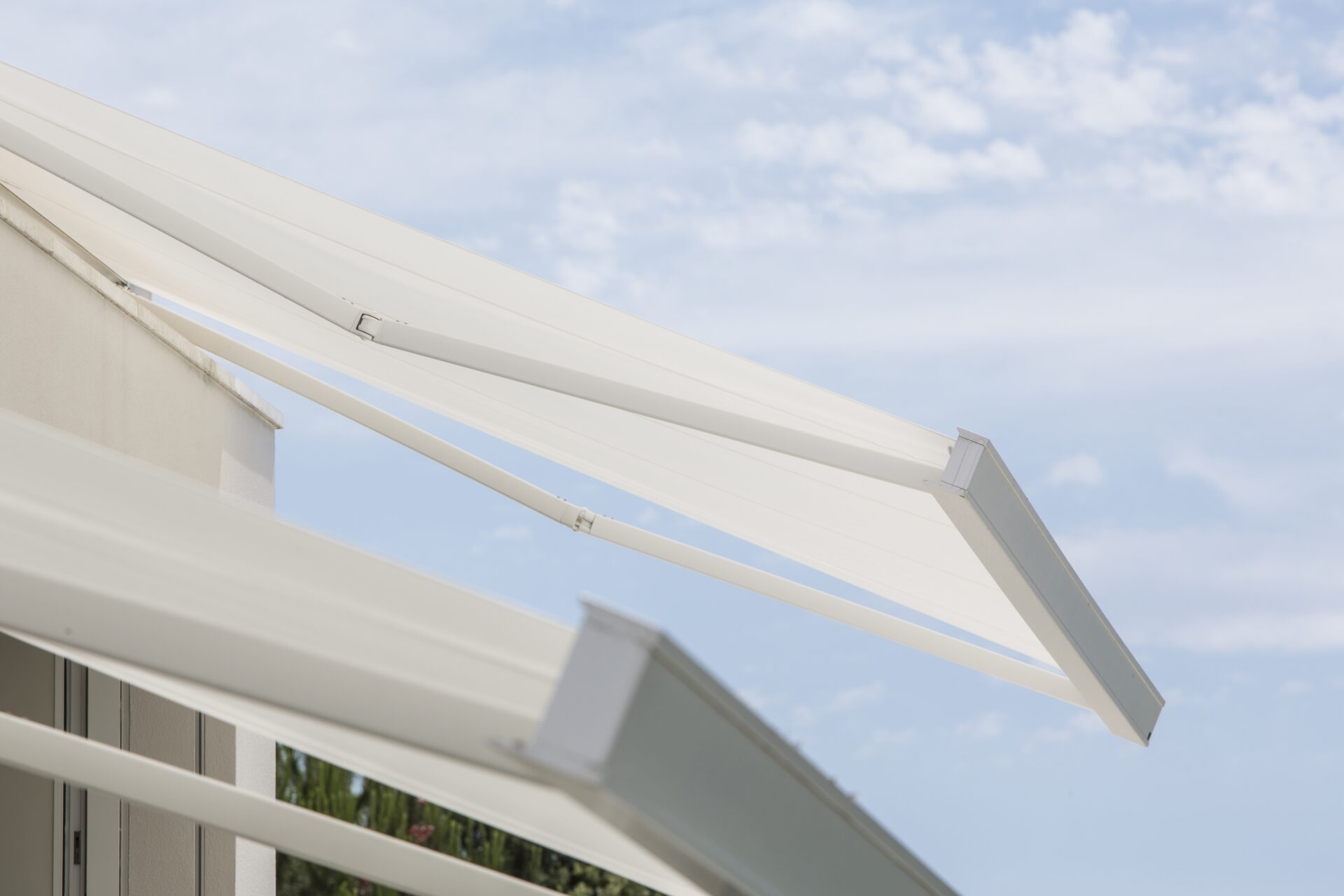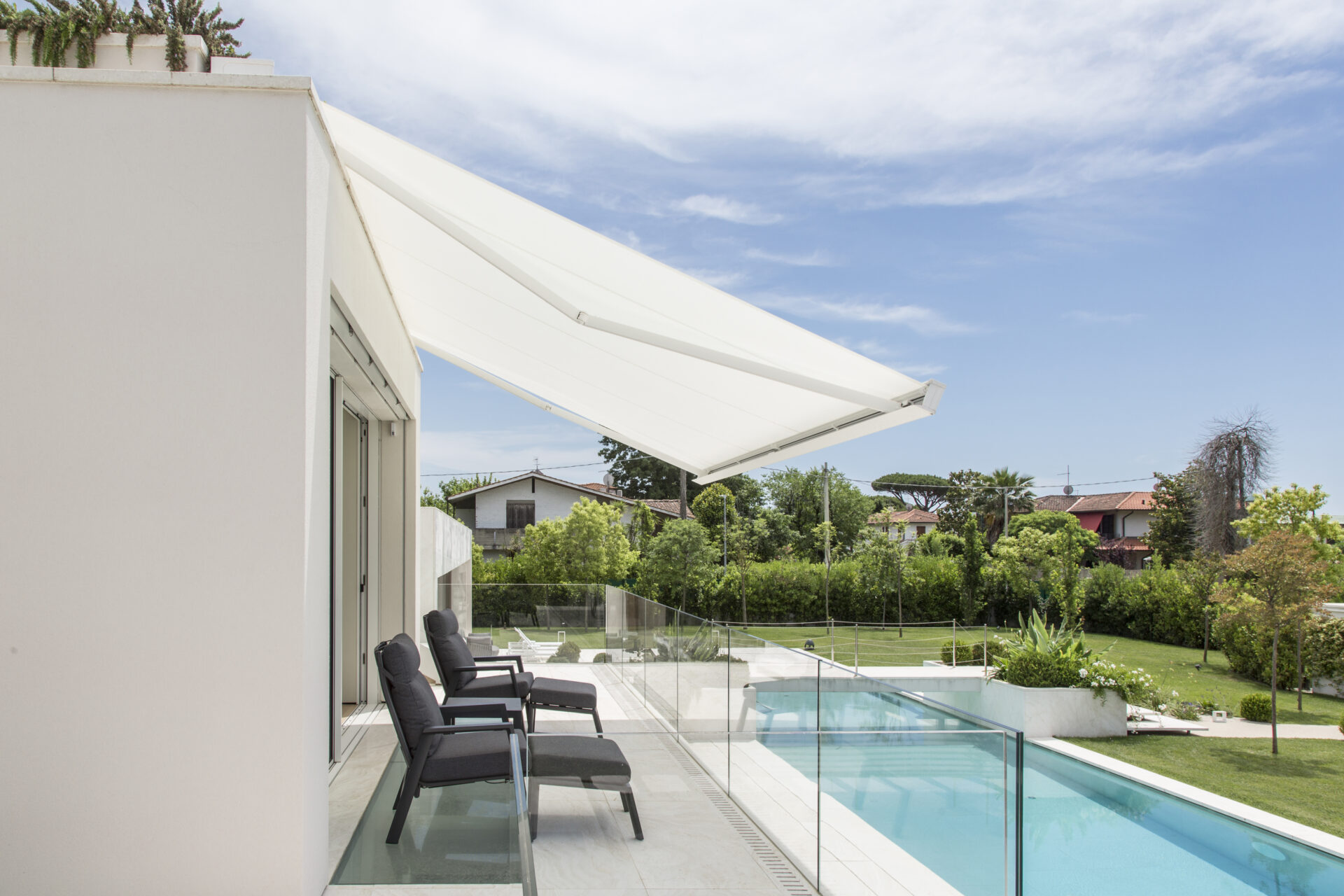An awning when opened, an exclusive-design rooflet when closed: Qubica is a perfect match of high industrial technology and Italian design. Horizontal retractable awning with LED strip kit optional.