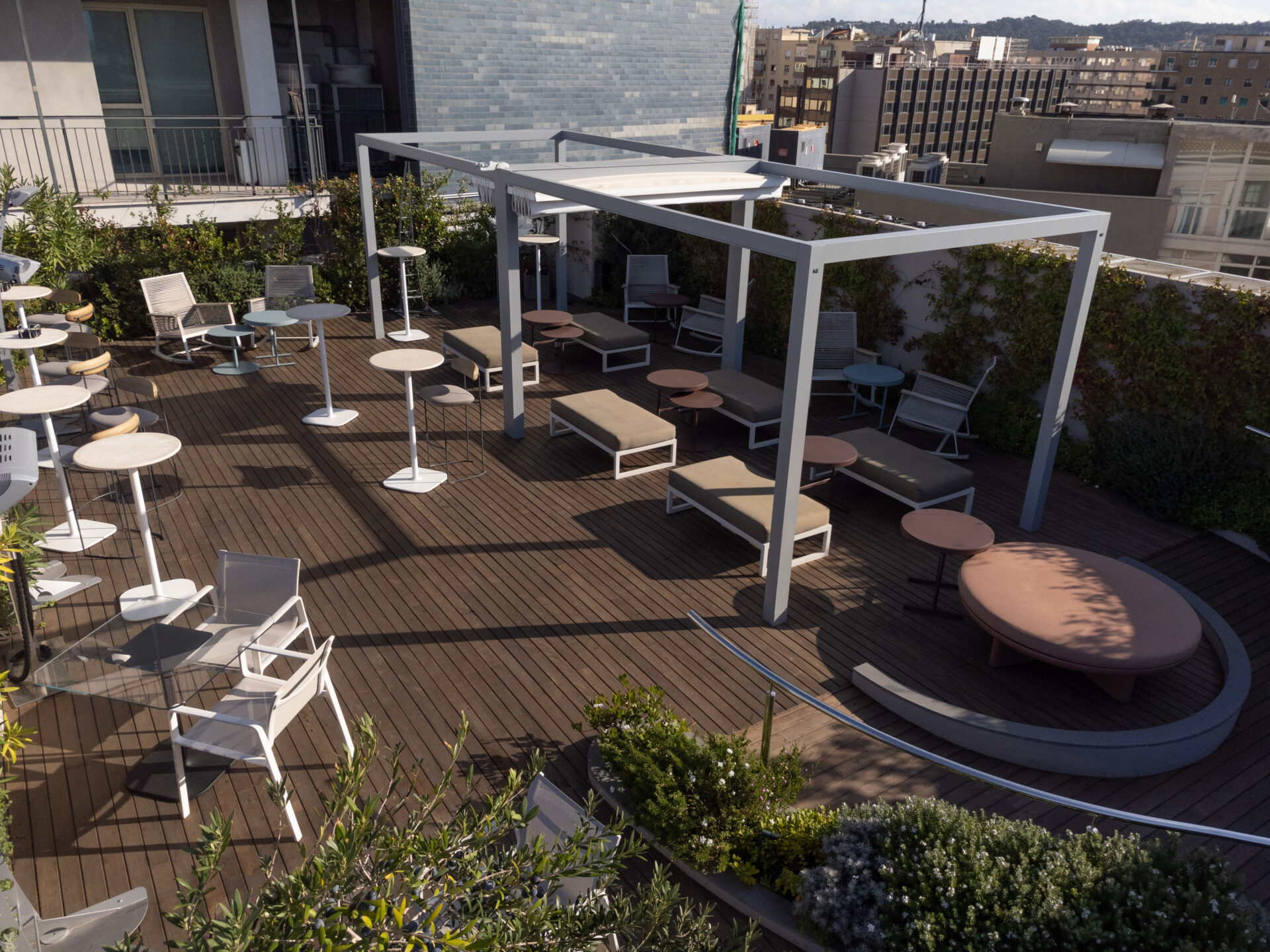 La terraza panorámica, que permite disfrutar de una impresionante vista de 360 grados de Cagliari, necesitaba un proyecto a medida para hacer de la «Cielo Rooftop Experience» del Palazzo Tirso un punto de singularidad entre estilo y comodidad.