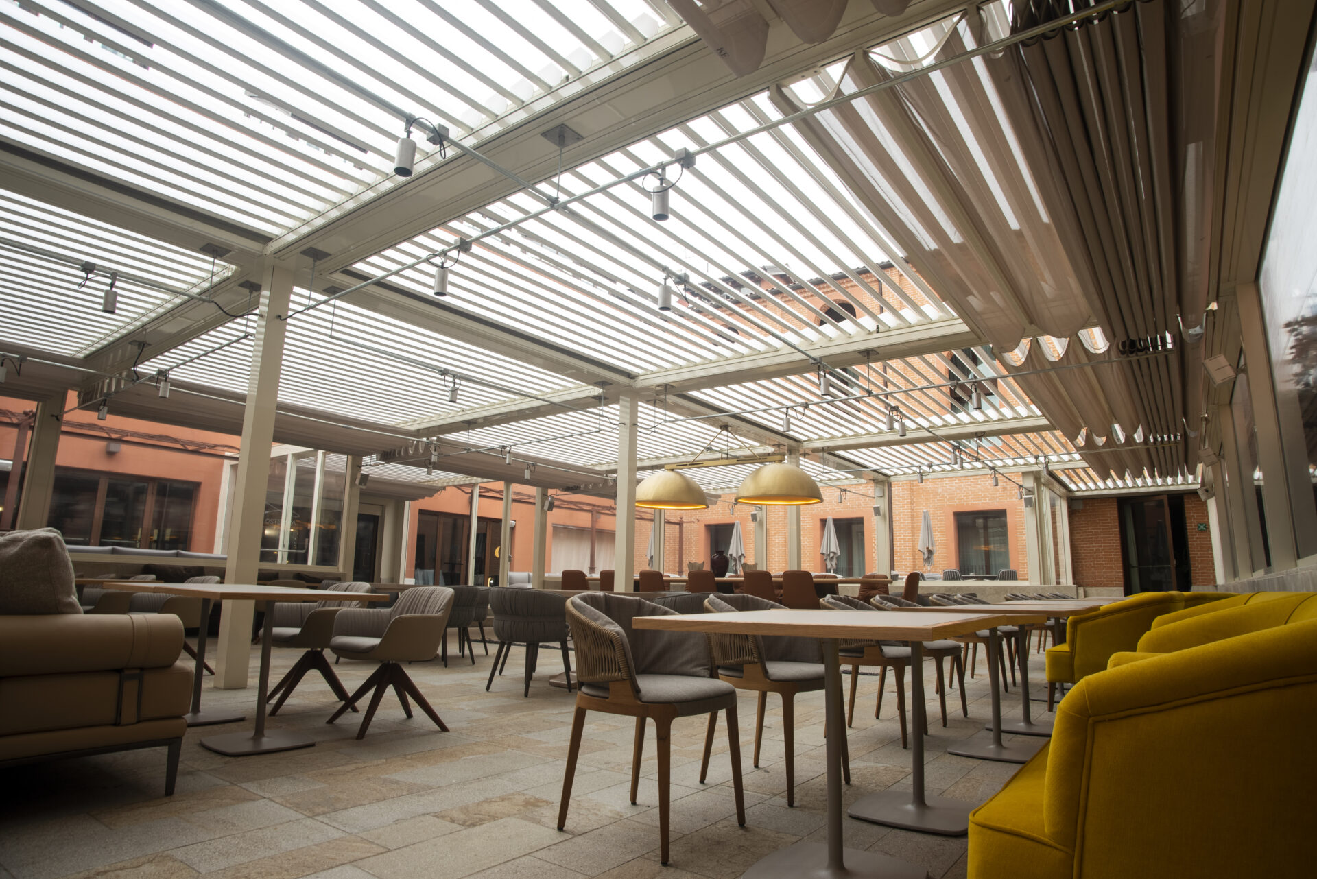 Le souhait du client de créer une atmosphère encore plus chaleureuse et raffinée a été exaucé grâce à une solution personnalisée intégrée au toit à lames de la Kedry Prime : une seconde protection a été ajoutée en dessous du toit, sous forme de stores filtrants T1 avec toile à empaquêtement motorisés. Cela permet de profiter de la nouvelle zone couverte quelles que soient les conditions climatiques : en gardant les lames fermées en cas de mauvais temps, ou bien en ouvrant les lames et les stores filtrants lors des journées les plus chaudes, afin de garantir à la fois une bonne aération et une protection solaire efficace.