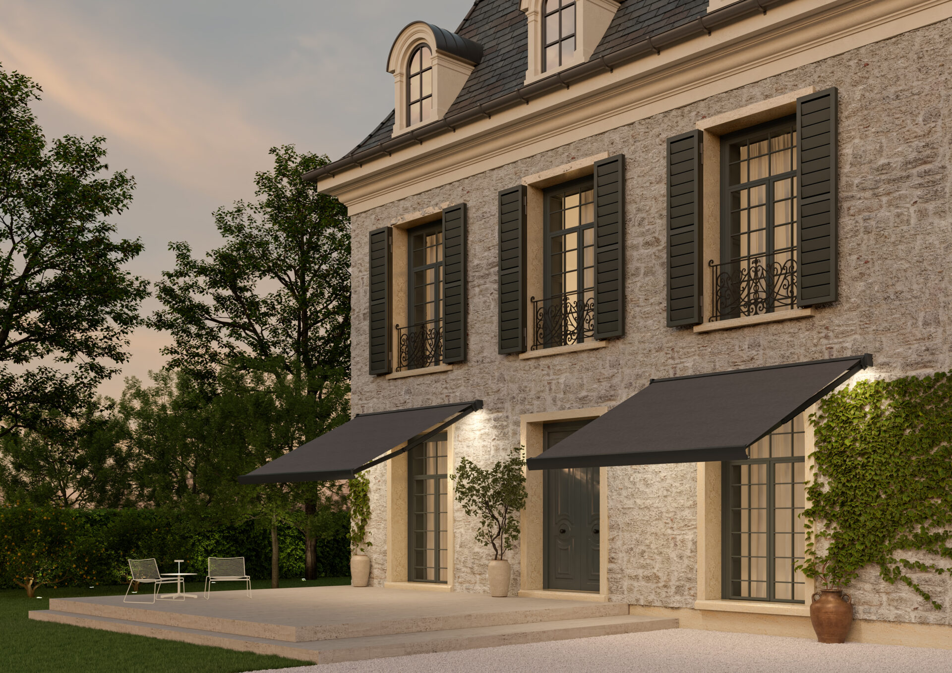 Ce store sur-mesure habille avec raffinement les terrasses et grands balcons tout en apportant un confort optimal au quotidien. Son bandeau LED intégré au coffre permet également de prolonger vos moments de détente une fois le soleil couché, en créant une ambiance chaleureuse et fonctionnelle.