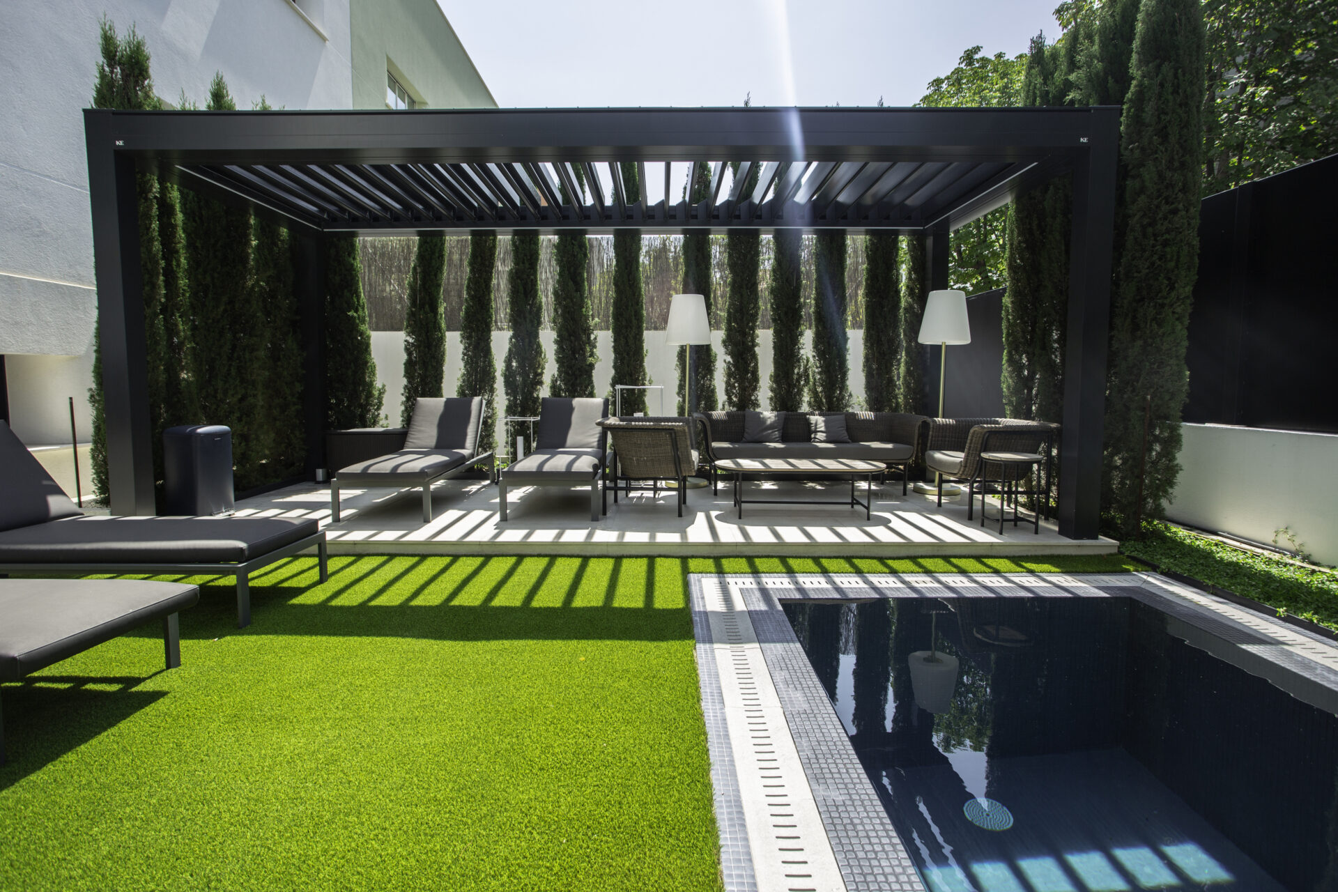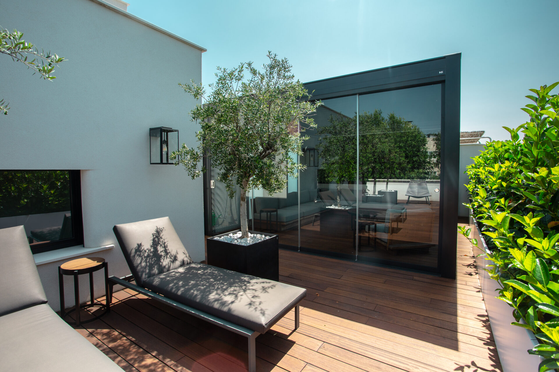 Testimoniando la profonda competenza di KE nell’ambito residenziale e contract, il progetto customizzato ha visto l’integrazione sinergica di due pergole bioclimatiche d’avanguardia: Kedry Skylife e Kedry Prime.