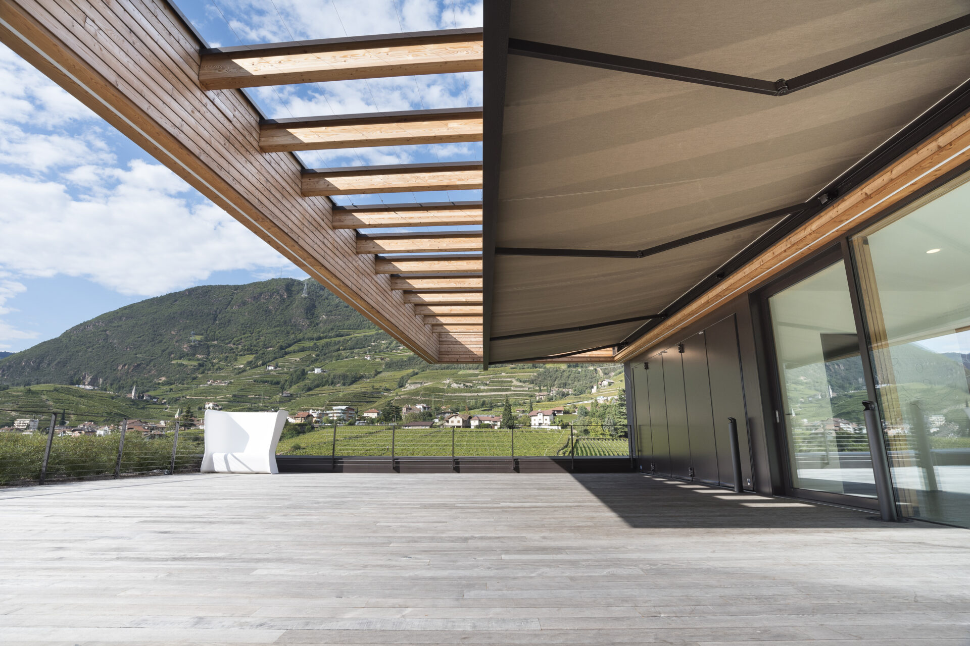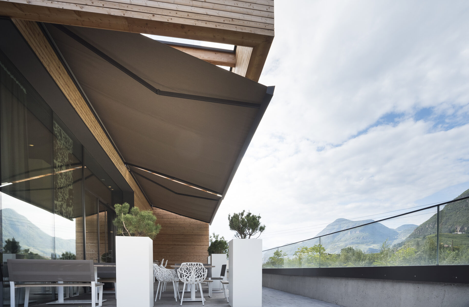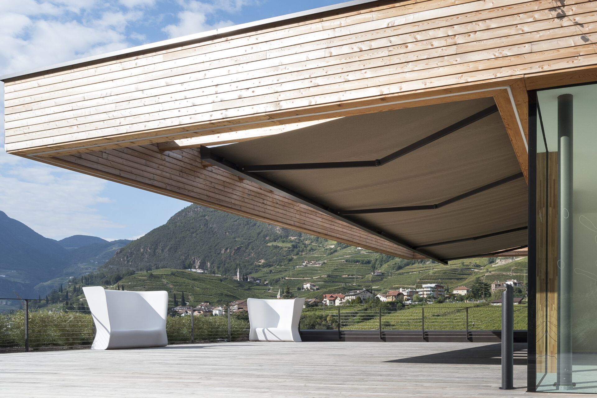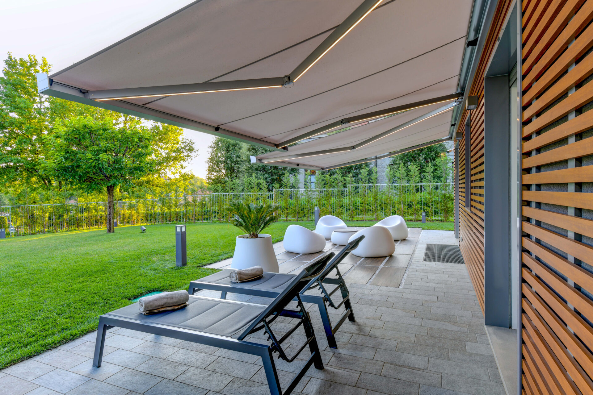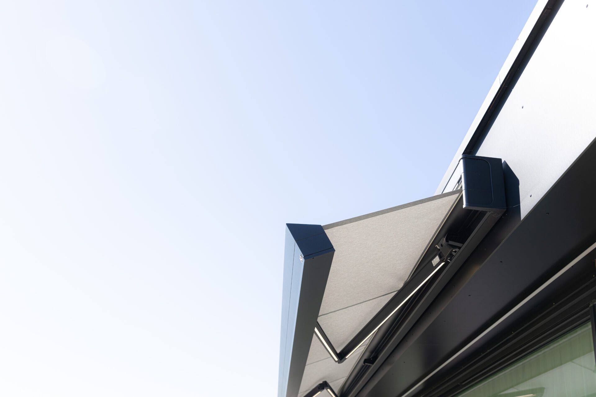 Il cassonetto squadrato si fonde perfettamente con le linee architettoniche delle architetture moderne e allo stesso tempo protegge il telo da corrosione e agenti atmosferici. QUBICA Plumb, nata da un’idea dell’Architetto Robby Cantarutti, ha il vantaggio di integrarsi perfettamente con l’estetica , come un elemento di minimo impatto, compatta ed elegante anche da chiusa.